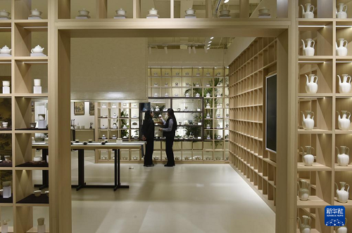 12月25日,觀眾在河北省曲陽縣一家定瓷生產(chǎn)企業(yè)的展廳參觀。(新華社記者 魯鵬 攝)