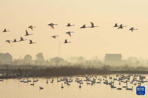 冬季,大批候鳥南遷到湖南省岳陽市屈原管理區(qū)東古湖濕地越冬。它們或悠然游弋在濕地淺水中,或振翅翱翔在濕地上空,勾勒出一幅靈動和諧的生態(tài)畫卷,成為當(dāng)?shù)囟找坏漓n麗的風(fēng)景線。