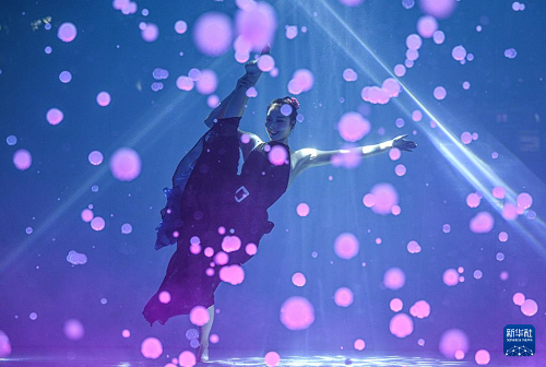 1月14日,參賽選手進行水下極限舞蹈表演。(新華社記者 蒲曉旭 攝)
