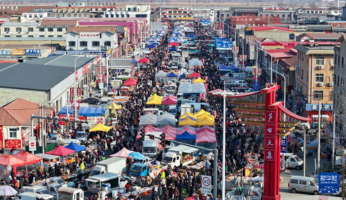 這是1月26日拍攝的天津蘆臺(tái)大集(無人機(jī)照片)。(新華社記者 孫凡越 攝)