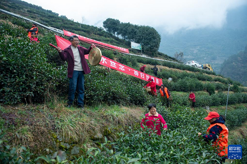 1月29日,三峽庫區(qū)湖北省宜昌市秭歸縣“絲綿茶1號”早茶基地開園,當(dāng)?shù)夭柁r(nóng)搶采茶葉嫩芽,供應(yīng)春節(jié)市場。湖北秭歸是“中國絲綿茶之鄉(xiāng)”,近年來,當(dāng)?shù)夭柁r(nóng)和華農(nóng)大科研人員立足本地優(yōu)勢茶樹品種,選育并推廣“絲綿茶1號”特早生茶樹新品種,助力鄉(xiāng)村產(chǎn)業(yè)振興。