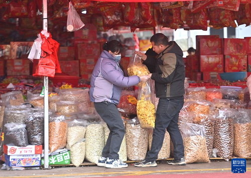 2月11日,在柳州市柳南區(qū)瑞龍路一家農(nóng)產(chǎn)品批發(fā)市場(chǎng),市民選購(gòu)年貨。(新華社記者 黃孝邦 攝)
