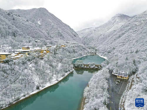 臨近春分節(jié)氣,甘肅省隴南市宕昌縣出現(xiàn)降雪,春雪將官鵝溝景區(qū)裝扮得銀裝素裹,白雪覆蓋下的樹木、湖泊和村莊共同構成一幅美麗畫卷。