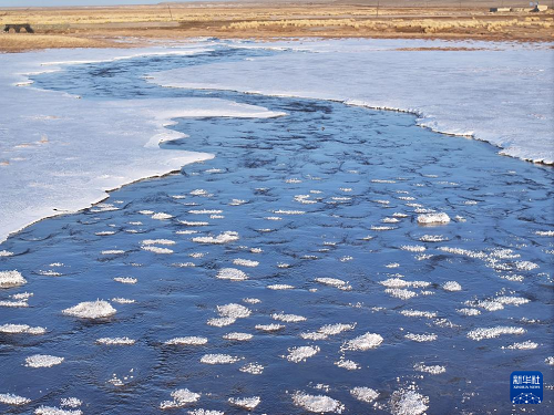 春回大地,位于甘肅省阿克塞哈薩克族自治縣阿勒騰鄉(xiāng)的哈爾騰河冰雪消融,初現(xiàn)生機(jī)。