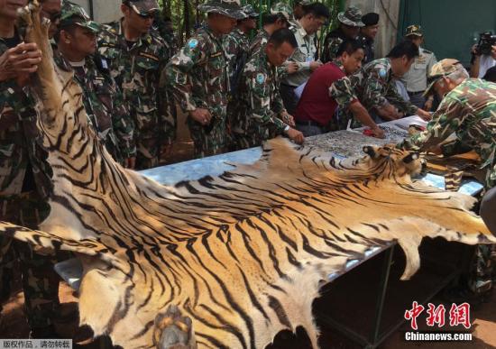 資料圖:當(dāng)?shù)貢r(shí)間6月2日,據(jù)外媒報(bào)道,泰國野生動(dòng)物保護(hù)機(jī)構(gòu)又在涉事寺廟中發(fā)現(xiàn)了虎皮和大批用老虎尸體制作的護(hù)身符。