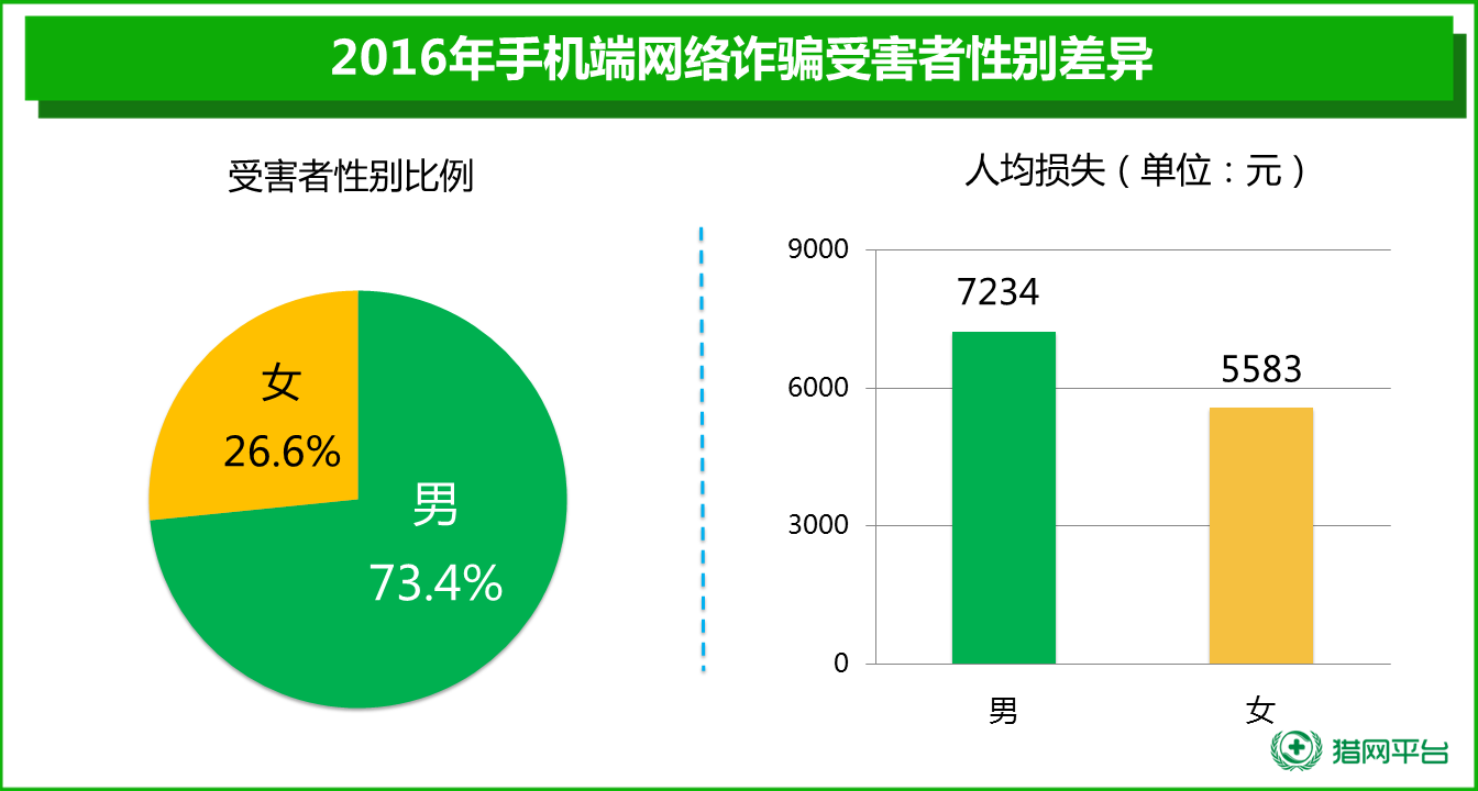 面對網(wǎng)絡(luò)詐騙,男性和女性誰更容易上當(dāng)受騙?不法分子最愛“瞄準(zhǔn)”哪個年齡段的人群,70、80還是90后?近日,這對電信詐騙的年齡與性別分布,360手機(jī)衛(wèi)士發(fā)布的《2016年中國手機(jī)安全狀況報告》給出了明確的答案,讓不少人大跌眼鏡。