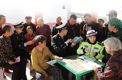 山西省靈丘縣公安局民警深入鄉(xiāng)村開展防范電信網(wǎng)絡詐騙宣傳。劉少貝攝