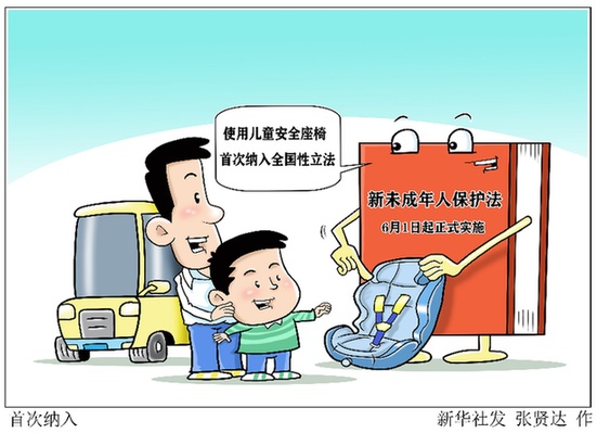 新修訂的《未成年人保護(hù)法》于今年6月1日起正式實施,明確提出未成年人的父母或者其他監(jiān)護(hù)人應(yīng)當(dāng)“采取配備兒童安全座椅、教育未成年人遵守交通規(guī)則等措施”,防止未成年人受到交通事故的傷害。