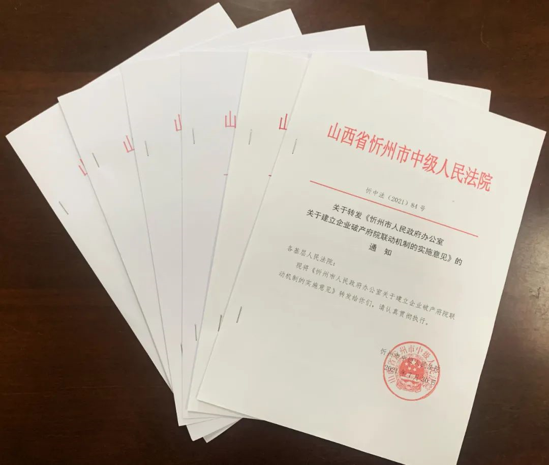 2021年7月30日,忻州市政府與忻州中院共同印發(fā)《關(guān)于建立企業(yè)破產(chǎn)府院聯(lián)動(dòng)工作機(jī)制的實(shí)施意見(jiàn)》。忻州正式建立企業(yè)破產(chǎn)府院聯(lián)動(dòng)工作機(jī)制,成立由市政府主要領(lǐng)導(dǎo)或受主要領(lǐng)導(dǎo)指派的分管領(lǐng)導(dǎo)和法院院長(zhǎng)擔(dān)任聯(lián)席會(huì)議共同召集人,各成員單位分管領(lǐng)導(dǎo)為聯(lián)席會(huì)議成員,負(fù)責(zé)統(tǒng)籌安排企業(yè)破產(chǎn)府院聯(lián)動(dòng)各項(xiàng)工作。