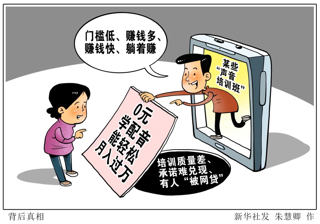 新華社記者發(fā)現(xiàn),有些商家乘機(jī)在網(wǎng)絡(luò)平臺(tái)推銷各類“聲音培訓(xùn)班”。有些培訓(xùn)班大多先以“免費(fèi)專業(yè)聲音培訓(xùn)”“幫聯(lián)系高收入兼職”等承諾招攬學(xué)員,但學(xué)員們?cè)诟邇r(jià)購買課程后,并未能實(shí)現(xiàn)廣告所稱“輕松月入過萬”“培訓(xùn)完保障就業(yè)”,有的甚至還背上網(wǎng)貸。