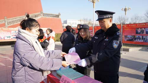 近日,市公安局忻府分局民警走上街頭,向市民發(fā)放《中華人民共和國(guó)憲法》等宣傳資料,對(duì)市民提出的各類(lèi)法律問(wèn)題予以細(xì)致解答,贏得了群眾的一致好評(píng)。魯明強(qiáng) 攝