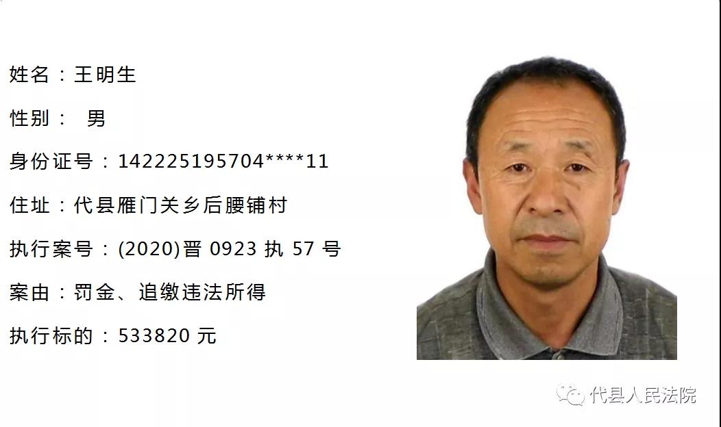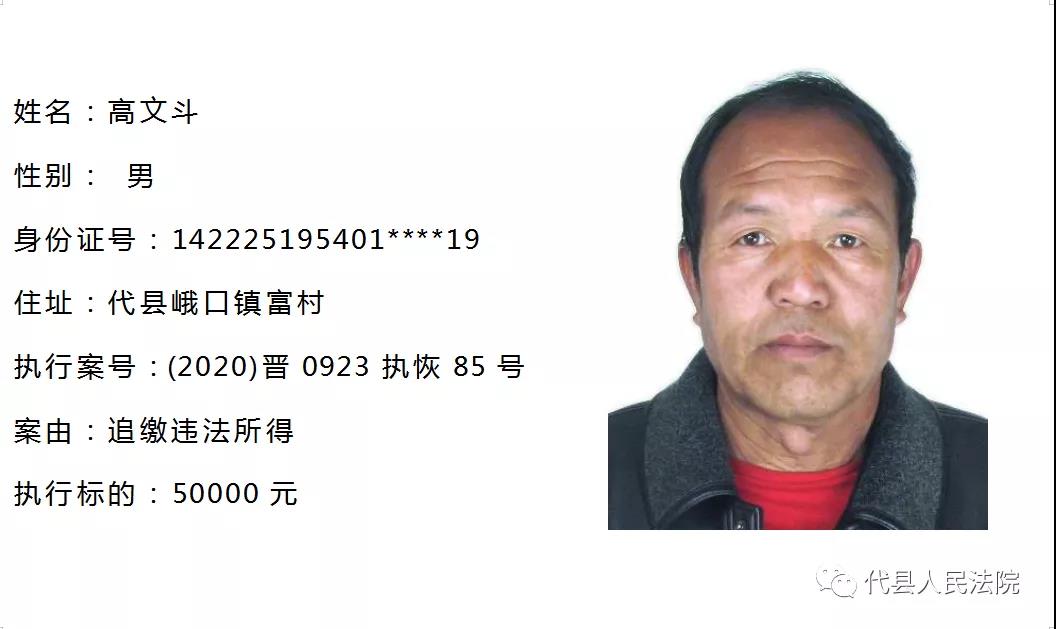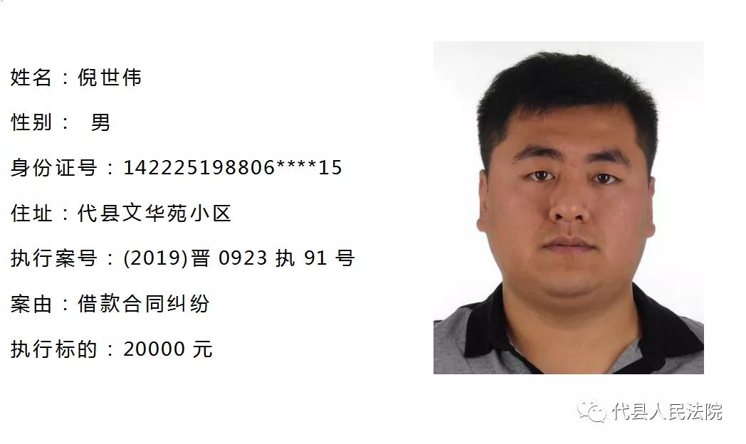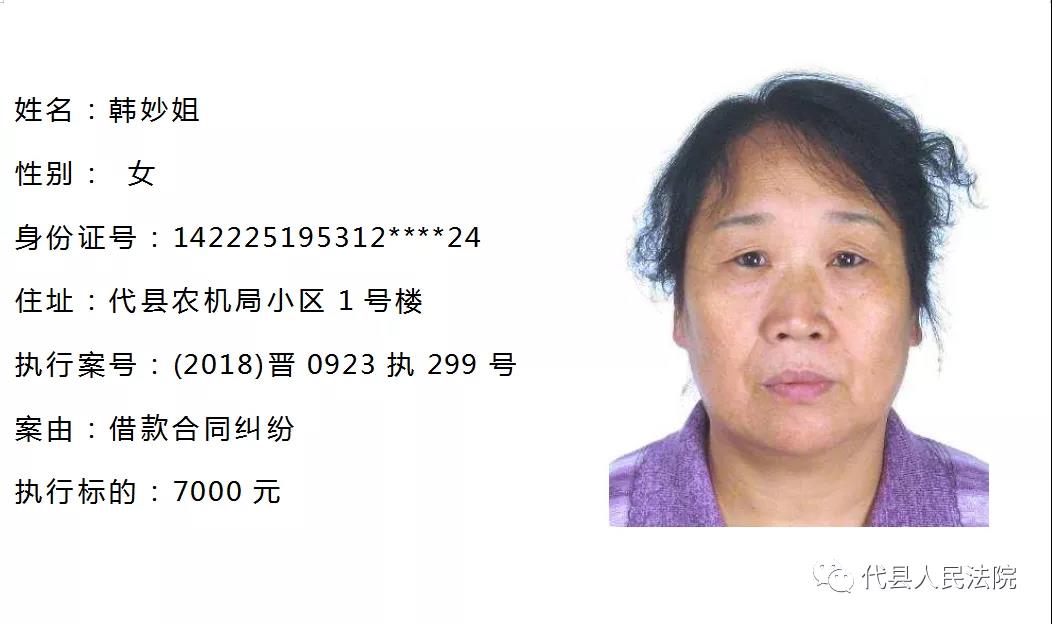代縣法院公布多名失信被執(zhí)行人