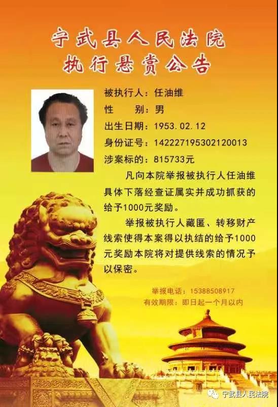 寧武縣人民法院:舉報(bào)有獎(jiǎng)!這些人有沒(méi)有你認(rèn)識(shí)的