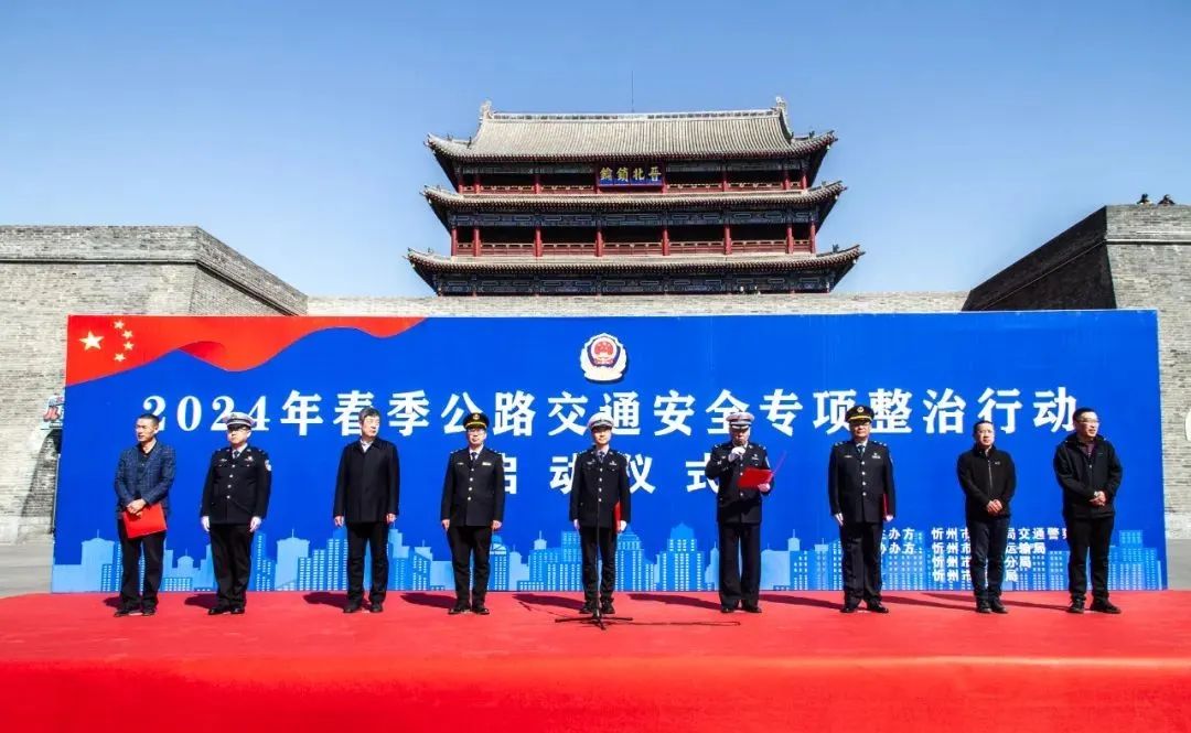 3月20日上午,忻州市2024年春季公路交通安全專項(xiàng)整治行動(dòng)在古城北城門樓廣場(chǎng)正式拉開(kāi)帷幕。市公安局交警支隊(duì)聯(lián)合市交通運(yùn)輸局、市公路分局、市教育局舉行了啟動(dòng)儀式和宣傳活動(dòng)。忻州市公安局交警支隊(duì)支隊(duì)長(zhǎng)劉元豐、副支隊(duì)長(zhǎng)張全勇、秩序科科長(zhǎng)白海龍,忻州市交通運(yùn)輸綜合行政執(zhí)法隊(duì)隊(duì)長(zhǎng)王卓斌、副隊(duì)長(zhǎng)于雷,忻州市教育局安全科科長(zhǎng)段進(jìn)元,忻州市公路分局養(yǎng)路科科長(zhǎng)吳俊、副科長(zhǎng)趙峰出席啟動(dòng)儀式。交警支隊(duì)直屬各大隊(duì)、執(zhí)法小分隊(duì),交通運(yùn)輸綜合行政執(zhí)法隊(duì)、客運(yùn)企業(yè)、運(yùn)輸企業(yè)、駕校代表及媒體記者共200余人參加了活動(dòng)。