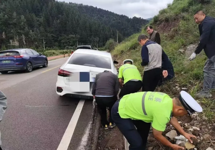 8月10日16時許,正值周六,寧武縣蘆芽山景區(qū)車水馬龍、游人如織。寧武縣公安局交警大隊輔警白濤在懸空村附近巡邏時,發(fā)現(xiàn)一輛白色轎車右側(cè)掉到排水溝里,幾位游客站在一旁,滿臉焦急,隨即上前了解情況。得知嚴(yán)先生一行四人從廣東自駕到山西旅游,慕名來到蘆芽山,因欣賞沿途美景,駕駛不慎,車輛右側(cè)掉到排水溝無法動彈。白濤立即向景區(qū)安保指揮部匯報情況,指揮部迅速指派附近巡防民輔警前往支援,并指令聯(lián)動景區(qū)工作人員共同協(xié)助游客脫困。巡防民輔警和景區(qū)工作人員齊心協(xié)力、互相配合,邊撿石頭墊車,邊喊口號推車。經(jīng)過幾輪嘗試,車子一點點挪動,二十分鐘后,終于將車子從排水溝里推出。此時,民輔警和景區(qū)工作人員已是滿頭大汗、渾身濕透,手上衣服上沾滿泥巴。嚴(yán)先生一行不停地表達(dá)著感激之情,白濤同志告訴嚴(yán)先生不要在意,這是寧武公安在景區(qū)的日常工作,每天都會幫助很多受困游客。嚴(yán)先生回到廣東后多次電話致謝,時常想起在寧武的美好旅程,他希望把寧武公安民警忠誠履職、暖心助民的精神和山西人民淳樸厚道的品質(zhì)讓更多人知道。8月16日,他通過忻州公安便民服務(wù)平臺發(fā)出了感謝信。