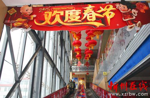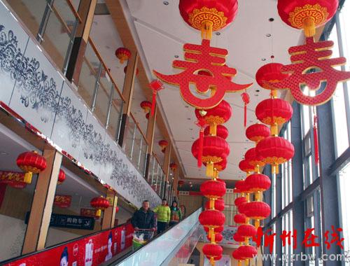 年味越來(lái)越濃,1月23日原平市商場(chǎng)里張燈結(jié)彩,大紅燈籠高高掛,一派喜慶景像,市民們?cè)诖虬缫恍碌纳虉?chǎng)里,在喜慶氣氛中夠年貨迎新春。(趙月仁 攝)
