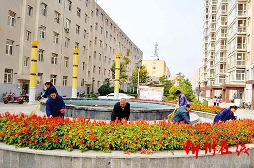 忻州城區(qū)鴻喜園小區(qū)物業(yè)管理辦始終以創(chuàng)建文明城市、共建美好家園為宗旨,小區(qū)內(nèi)呈現(xiàn)出一派綠色、整潔、優(yōu)雅的景象,被市房地產(chǎn)管理局評(píng)為優(yōu)秀住宅小區(qū)。圖為近日小區(qū)物業(yè)工作人員修建花葉,美化環(huán)境,以實(shí)際行動(dòng)迎接黨的十九大勝利召開。王金龍 攝