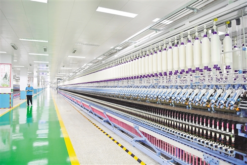山東省鄒平縣魏橋紡織股份有限公司智能化車間里,12.5萬紗錠智能化生產(chǎn)線運轉(zhuǎn)有序,工作人員只需要觀察手中的智能設(shè)備就可以了解所有機器的運行狀況,原本需要10人完成的工作現(xiàn)在只需要1人。本報記者 高興貴攝