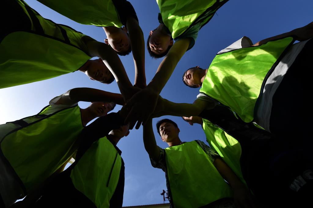 ↑這是學(xué)生們?cè)谂懿竭M(jìn)行體能訓(xùn)練(4月16日攝)。新華社記者詹彥攝