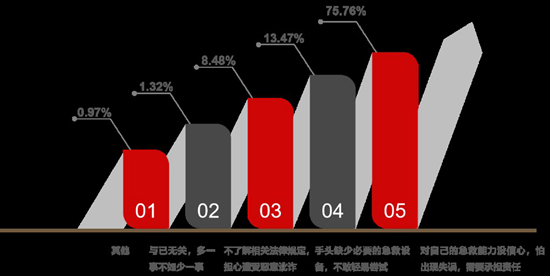 廉思課題組的報告顯示,缺乏急救知識是大學生不愿參與現(xiàn)場急救的原因之一。當遇到呼吸停止的無意識人員時,68.33%的被調(diào)查者選擇“撥打120,并在原地等候”,能“立即上前查看,并采取急救措施”的只有25.76%。