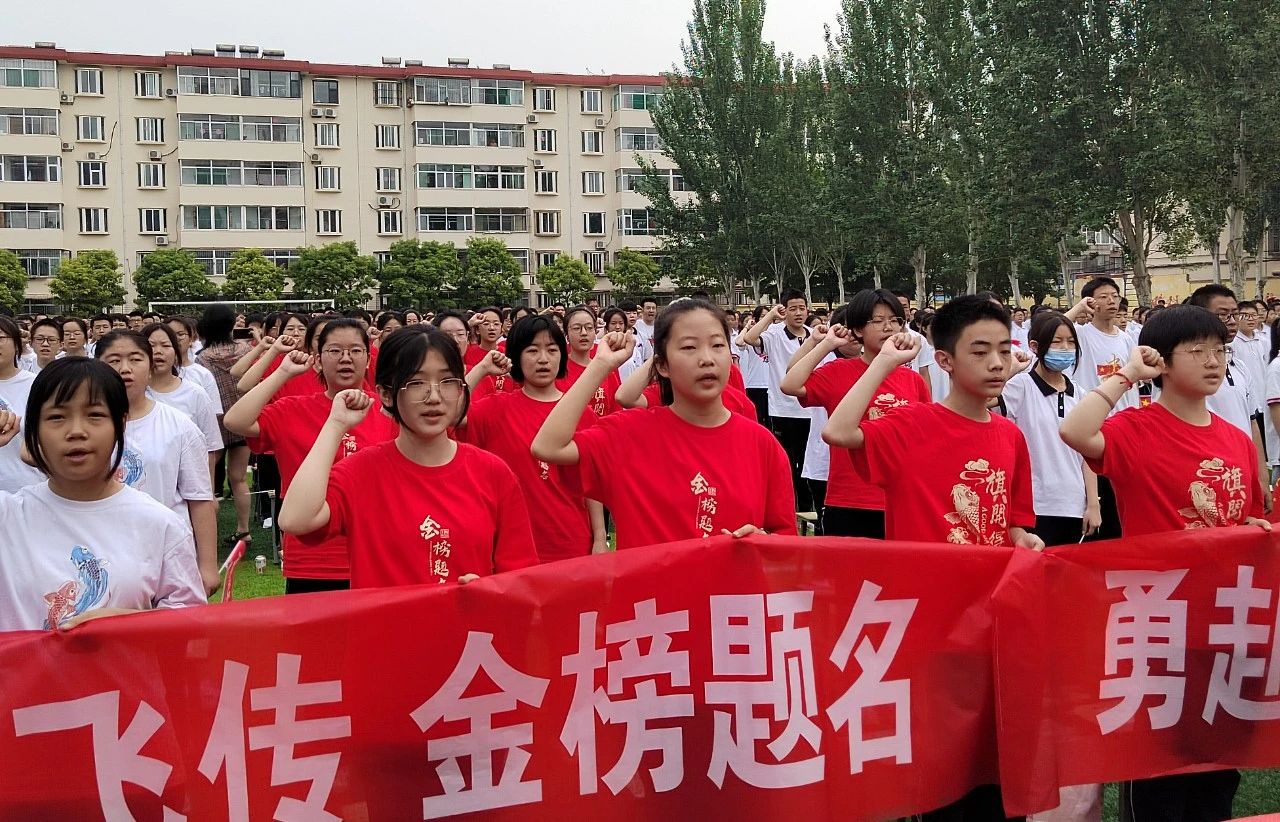 畢業(yè)宣誓環(huán)節(jié),全體初三學子舉起右拳,錚錚誓言承載著同學們的激情與夢想,響徹校園!七、八年級吶喊助威,祝愿學長學姐們考試順利,金榜題名!