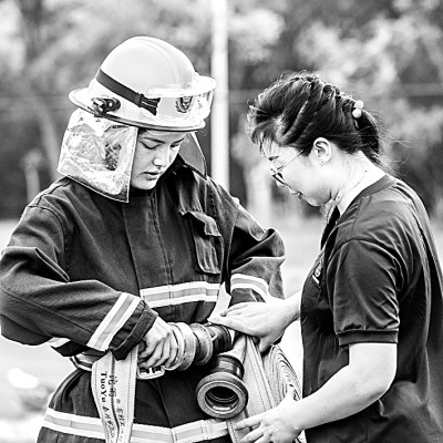 重慶電訊職業(yè)學院建筑消防專業(yè)(三年制)大二學生在輔導員指導下進行訓練。新華社發(fā)