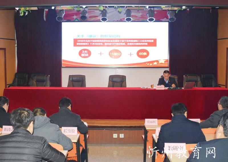 11月28日,原平市教科系統(tǒng)召開黨的十九屆五中全會精神宣講報告會,市委宣講團(tuán)成員、市教科局黨組書記、局長申國華作宣講報告。市教科局主任科員、機(jī)關(guān)支部書記賈毅主持報告會。教科系統(tǒng)各學(xué)校校長、書記,局機(jī)關(guān)各科室負(fù)責(zé)人參加報告會。