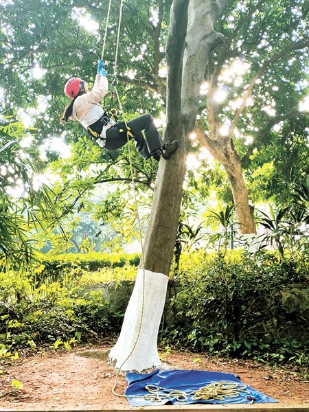 “大學(xué)體育課不是只能在象牙塔里,它也可以服務(wù)社會(huì),被賦予社會(huì)服務(wù)的功能?!编嵾_(dá)雄欣慰地談道,這些寶貴的社會(huì)實(shí)踐經(jīng)歷,讓高校的課堂和社團(tuán)真正成為人才培養(yǎng)的土壤,不少學(xué)生在學(xué)習(xí)攀樹的過程中看到了全新的生活方式。俞燕玲就把攀樹當(dāng)成職業(yè),成為中國大陸獲得國際樹木學(xué)會(huì)認(rèn)證的唯一一位全職攀樹師。