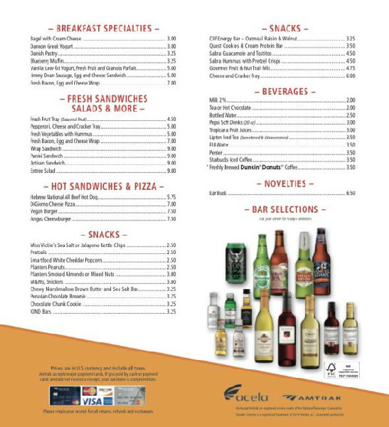 Acela上的食品價目表