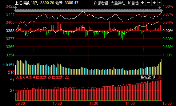 截至收盤(pán),滬指報(bào)3413.57點(diǎn),漲0.75%,成交2426億元;深成指報(bào)11467.97點(diǎn),漲0.83%,成交2832億元;創(chuàng)業(yè)板指數(shù)報(bào)1859.07點(diǎn),漲0.47%,成交753.8億元。