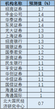 據(jù)Wind資訊數(shù)據(jù)顯示,十八家機構(gòu)對6月份CPI的平均預(yù)測值為同比上漲1.2%。其中,招商證券給出了上漲1.7%的最高預(yù)測值;北大國民經(jīng)濟研究中心的預(yù)測值最低,為同比上漲0.7%。