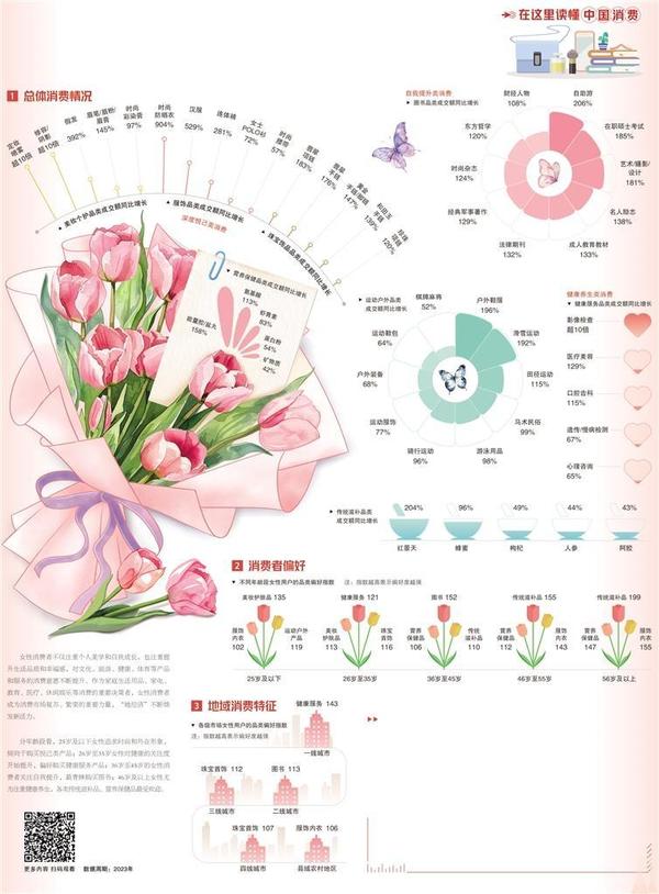 精致多元的悅己消費(fèi)受到持續(xù)追捧,女性對(duì)于自我價(jià)值和個(gè)性化的追求得到滿足。顏值消費(fèi)方面,彩妝、美發(fā)以及醫(yī)美產(chǎn)品的成交額快速增長(zhǎng);在服飾消費(fèi)上,女性更注重服裝的時(shí)尚感和個(gè)性化表達(dá),除了時(shí)尚防曬衣、連體褲等熱銷(xiāo)外,“國(guó)潮范兒”的漢服、新中式服飾成為女性衣櫥里的新寵。