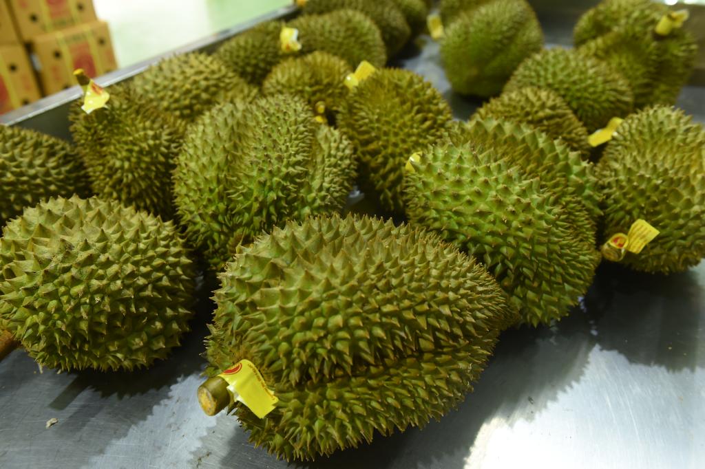 沙西通果園的榴蓮被采摘后,很快被運到附近一家加工廠。這里,工人們忙碌地對新鮮榴蓮進行分揀、稱重、打包、裝車。