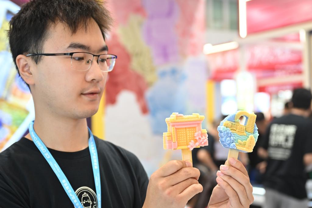 9月26日,參展商在博覽會現(xiàn)場展示兩款高校主題文創(chuàng)冰淇淋。新華社記者 孫凡越 攝 “除了減少糖分和卡路里外,一些冰淇淋品牌還開始添加具有健康益處的成分,如益生菌、膳食纖維等。這些成分不僅提升了冰淇淋的營養(yǎng)價值,還賦予了產(chǎn)品更多的健康賣點?!睆埿『胝f。 光明乳業(yè)是中國領(lǐng)先的乳制品生產(chǎn)商之一,近期上海益民食品一廠有限公司推出了輕乳系列產(chǎn)品。 “這些產(chǎn)品減少了50%的蔗糖,有些還添加了膳食纖維,小杯設(shè)計也便于消費者控制熱量?!痹诠饷魅闃I(yè)展臺上的張敏懿介紹道。 中國的德氏集團有多款產(chǎn)品出口至美國、加拿大、新西蘭等國家和地區(qū)?!拔覀冊诋a(chǎn)品的原料添加和外觀設(shè)計方面,始終秉持著天然與健康的原則。在走向海外市場時,我們不斷和海外合作商溝通交流,一起探索冰淇淋產(chǎn)品創(chuàng)新和健康升級新的可能性?!痹摷瘓F營銷總監(jiān)孟杰說。