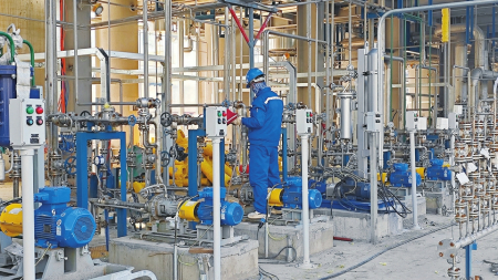制造“綠色”,更要“綠色”制造。在廠區(qū)內,循環(huán)水站、凈水廠、污水站等廢棄物處理區(qū)早已拔地而起,進入試運行環(huán)節(jié)。“廠區(qū)所產(chǎn)生的廢氣經(jīng)過DFTO處理達標排放,廢固由資質單位集中回收處理,污水經(jīng)過凈水處理、回用水裝置回收循環(huán)利用,可實現(xiàn)零排放。另外,還充分回收利用了開發(fā)區(qū)內的新石能源公司產(chǎn)生的焦爐氣作為燃料,讓綠色環(huán)保貫穿產(chǎn)品始終?!表椖抗こ處煆埡陚ソ榻B道。
