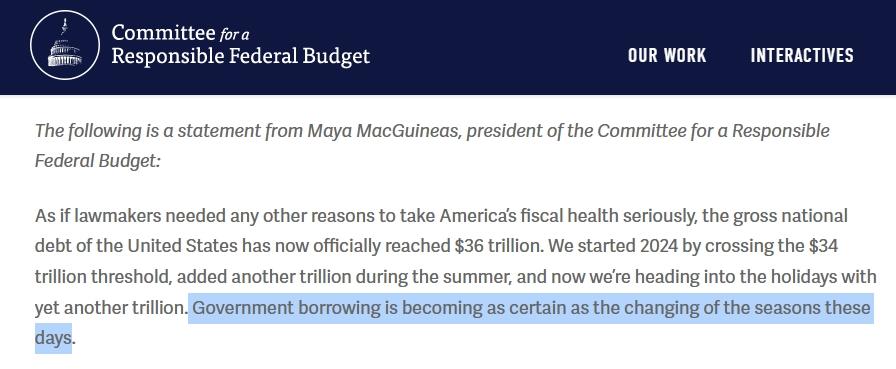 聯(lián)邦預(yù)算問責(zé)委員會(huì)主席馬婭·麥吉尼亞斯在發(fā)言稿中直言:“如今,美國政府借款正變得像季節(jié)的變化一樣規(guī)律而確定。”