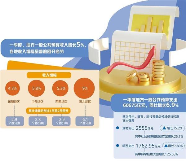 一季度,地方一般公共預(yù)算支出60675億元,同比增長6.9%。各地普遍在基本民生、教育、科技等重點領(lǐng)域保持較高支出強度。比如,湖北一季度地方一般公共預(yù)算支出2555億元,增長15.2%,其中社會保障和就業(yè)支出增長25.7%。陜西一季度一般公共預(yù)算支出1762.95億元,增長7.89%,其中科學(xué)技術(shù)支出增長125.63%?!案鞯刎斦С隼^續(xù)保持較快增長,衛(wèi)生、社保、科技和農(nóng)林水支出增速加快,財政公共服務(wù)和保障能力不斷增強?!奔质∝斦茖W(xué)研究所所長張依群表示。