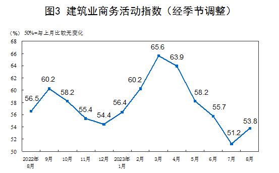 此外,在中國非制造業(yè)采購經(jīng)理指數(shù)運(yùn)行情況方面,8月份,非制造業(yè)商務(wù)活動指數(shù)為51.0%,比上月下降0.5個百分點(diǎn),仍高于臨界點(diǎn),非制造業(yè)持續(xù)擴(kuò)張。