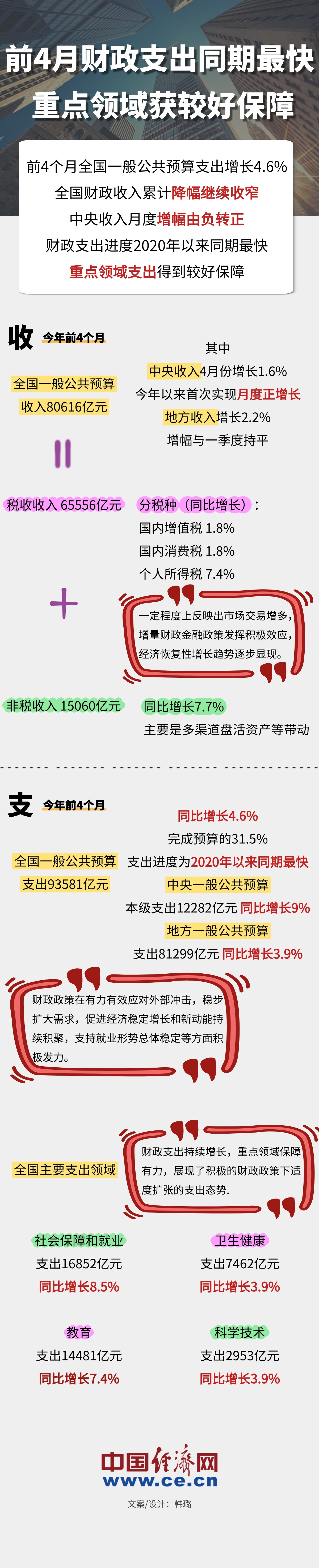 前4月財(cái)政支出同期最快 重點(diǎn)領(lǐng)域獲較好保障