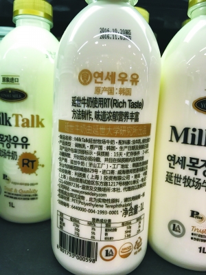 在北京某高端超市,最為集中的原裝進(jìn)口奶來自于韓國,南陽牧場牛奶、延世牧場牛奶、濟州樂活牛奶三款牛奶是超市銷售人員介紹的產(chǎn)品中賣得最火的。不過,這三款牛奶有一個共同的特點,就是產(chǎn)品類型均為調(diào)制乳。