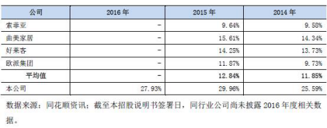 2014至2016年同行業(yè)公司綜合毛利率對比(來源:招股書)