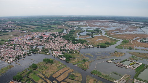 資料圖:這是鳥瞰雄安新區(qū)安新縣境內(nèi)的白洋淀淀區(qū)內(nèi)的村莊。新華社記者 楊世堯 攝