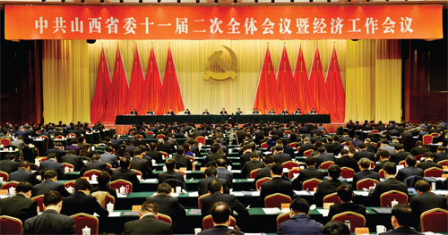 中國(guó)共產(chǎn)黨山西省第十一屆委員會(huì)第二次全體會(huì)議暨經(jīng)濟(jì)工作會(huì)議會(huì)場(chǎng)。(山西日?qǐng)?bào)記者 李聯(lián)軍 李兆民 攝)