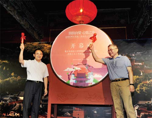 本報訊(記者 任逢春)7月22日,經(jīng)過扎實細致的準備,由文化部恭王府博物館和忻州市委、市政府共同主辦的“欣欣向榮,心靈之舟”山西忻州文化遺產(chǎn)精品展示月系列活動正式亮相首都。同日,文化部恭王府博物館(駐忻州靜樂)傳統(tǒng)工藝工作站正式成立,文化部副部長項兆倫和市委書記李俊明一同擊鼓啟幕,市委常委、常務(wù)副市長趙志堅主持開幕式。文化部非遺司司長陳通,文化部恭王府博物館館長孫旭光,省委宣傳部常務(wù)副部長李福明,省文化廳副廳長趙銀邦,市委常委、宣傳部長陳義青,市委常委、秘書長崔建新,市人大常委會副主任、靜樂縣委書記李德新,副市長王月娥,以及文化部恭王府博物館、文化部離退休人員服務(wù)中心、省委宣傳部、省文化廳和我市的有關(guān)領(lǐng)導同志出席開幕活動。中央、省、市媒體記者和各地游人一同見證開幕。
