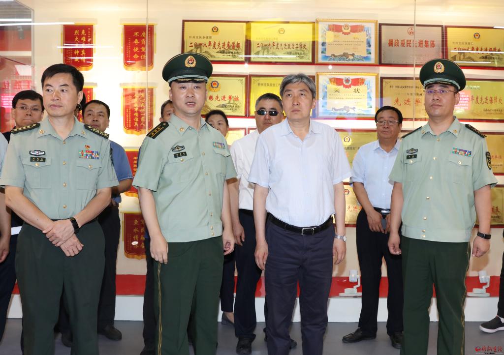 在武警忻州支隊,朱曉東參觀支隊史展覽館,詳細了解支隊歷史沿革和發(fā)展情況。他指出,武警支隊是一支作風優(yōu)良、能吃苦能戰(zhàn)斗能奉獻的隊伍,感謝大家在聚焦備戰(zhàn)打仗、深化拓展軍事斗爭準備的同時,積極參與和支持忻州經(jīng)濟社會發(fā)展,特別是在防火滅火、應急救援、搶險救災中,官兵們第一時間響應,不畏艱險、沖鋒在前,全力幫助處置險情、整治環(huán)境,用實際行動展現(xiàn)了人民子弟兵的本色擔當。希望廣大官兵繼續(xù)加強訓練,時刻準備發(fā)揮職能,在保障全市安全穩(wěn)定方面作出更大貢獻,在新時代新征程上再立新功。忻州將堅持以習近平新時代中國特色社會主義思想為指導,堅定不移支持國防和軍隊現(xiàn)代化建設(shè),扎實推進軍民融合發(fā)展,堅定不移做好擁軍優(yōu)屬工作,不斷完善退役軍人服務保障體系,共同譜寫軍政軍民團結(jié)新篇章。