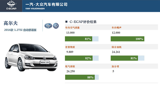 人民網(wǎng)天津3月9日電(鄂智超)日前,中國生態(tài)汽車評價(C-ECAP)新一批測試結(jié)果公布。本次共公布了四款車型,分別為一汽-大眾高爾夫 2016款 1.2TSI自動舒適版(90.40分)、廣汽傳祺GS4 2015款 200T G-DCT舒適版(80.68分)、觀致3轎車 2016款1.6L 6速自動致能型(82.05分)、東風(fēng)本田哥瑞 2016款1.5L CVT舒適版(76.57分)。其中一汽-大眾高爾夫車型獲得白金牌,廣汽傳祺GS4與觀致3轎車獲得金牌,東風(fēng)本田哥瑞獲銀牌。