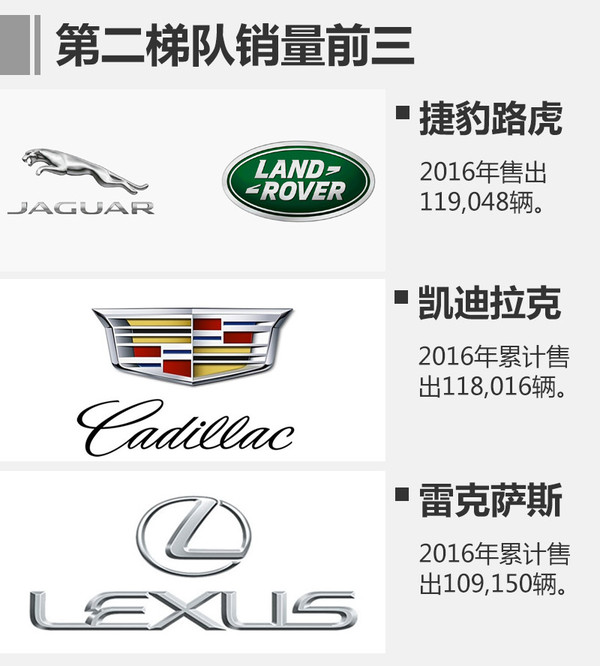 第二梯隊(duì)銷(xiāo)量最高的前三豪華品牌
