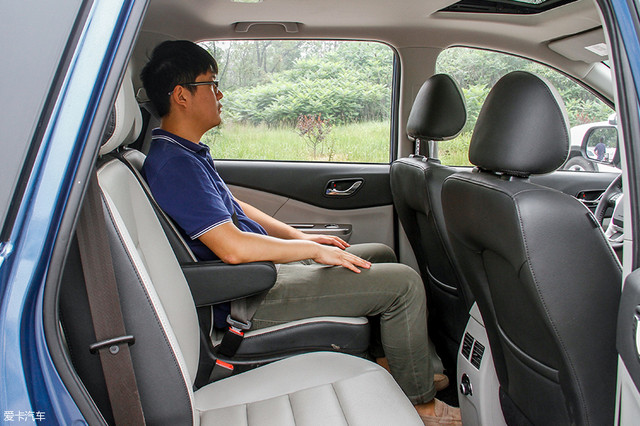 前排空間表現(xiàn)非常不錯,體驗者175cm的身高坐在駕駛位上面,頭部和頂端的距離還有兩拳之遠,且視野寬闊。