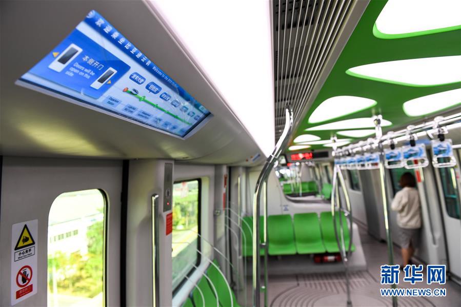 這是在深圳比亞迪總部拍攝的“云軌”車廂內(nèi)部(2018年11月30日攝)。 新華社記者毛思倩攝