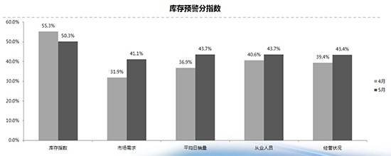 從庫(kù)存預(yù)警分指數(shù)來看,市場(chǎng)需求指數(shù)、平均日銷量指數(shù)、從業(yè)人員指數(shù)、經(jīng)營(yíng)狀況指數(shù)環(huán)比上升,庫(kù)存指數(shù)環(huán)比下降。